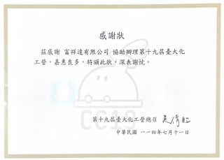 【感謝第十九屆臺大化工營頒發感謝狀】